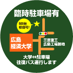 今年度の経大祭は、11月11日(土)・11月12日(日)! 広島経済大学の敷地内(図書館前の中庭・2号館と1号館の間の広場、および学生会館)で、たくさんの催し物を企画していますので、是非皆さんご来場ください! ※ 無料スクールバスをピストン運行していますのでご利用ください。 大学祭当日は学生駐車場を開放しますので、車でお越しの際にはそちらをご利用ください。 JR等をご利用される方は下祇園駅からスクールバスがピストン運行していますので、ご利用ください。 大学祭の特別ダイヤはこちら→スクールバス時刻表 (102KB)