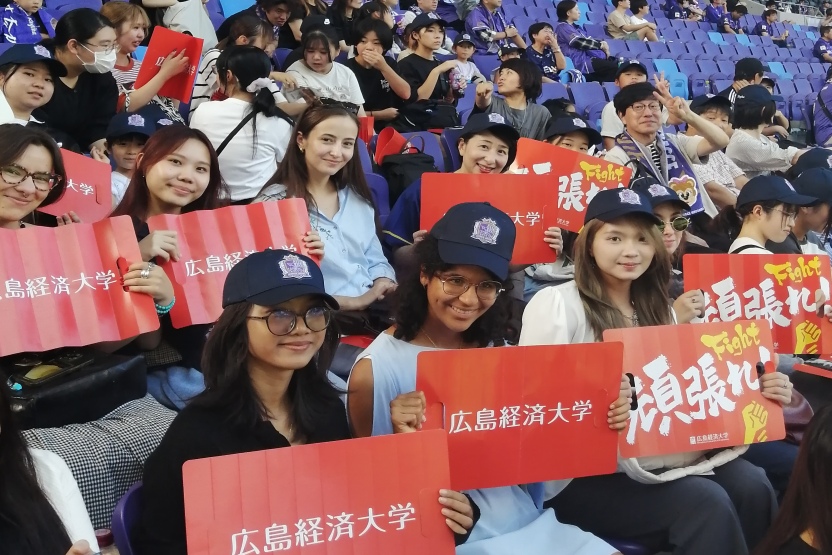 On Saturday, September 27, the international exchange students and Japanese students went to the Edion Peach Wing Hiroshima Stadium to watched the "Sanfrecce Hiroshima Regina" womens soccer team. For the exchange students who had just arrived in Japan this month, it was a valuable opportunity to get a taste of the local sports culture. The students had fun cheering the team and had an enjoyable time. This experience promoted friendship and understanding between the exchange students and Japanese students
