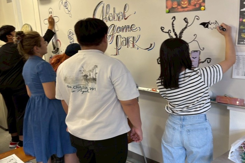 On Saturday, October 25th, short-term exchange students opened a “Global Game Park” booth at Hiroshima University of Economics University Festival. This initiative aimed to allow exchange students to introduce their home countries' cultures and languages while interacting with local residents and students from our university. Preparations were made in cooperation with a student volunteer group called “VIVA.”*