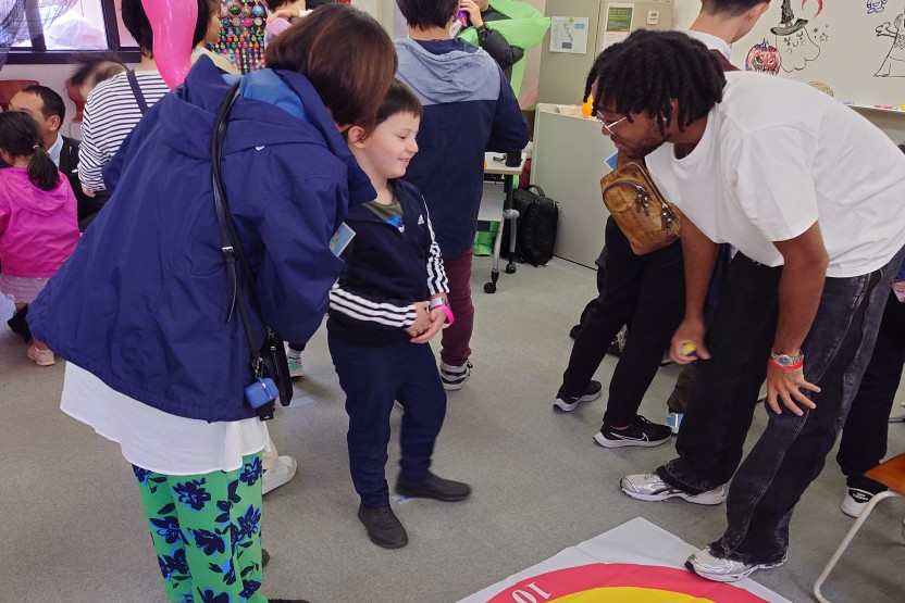 On the day of the event, an adult-oriented “Language Corner” where local residents could experience the native languages of international students and a “Game Corner” where children could enjoy activities with the students were set up. Over 100 people (local residents, children and students) visited the event and enjoyed the international exchange.