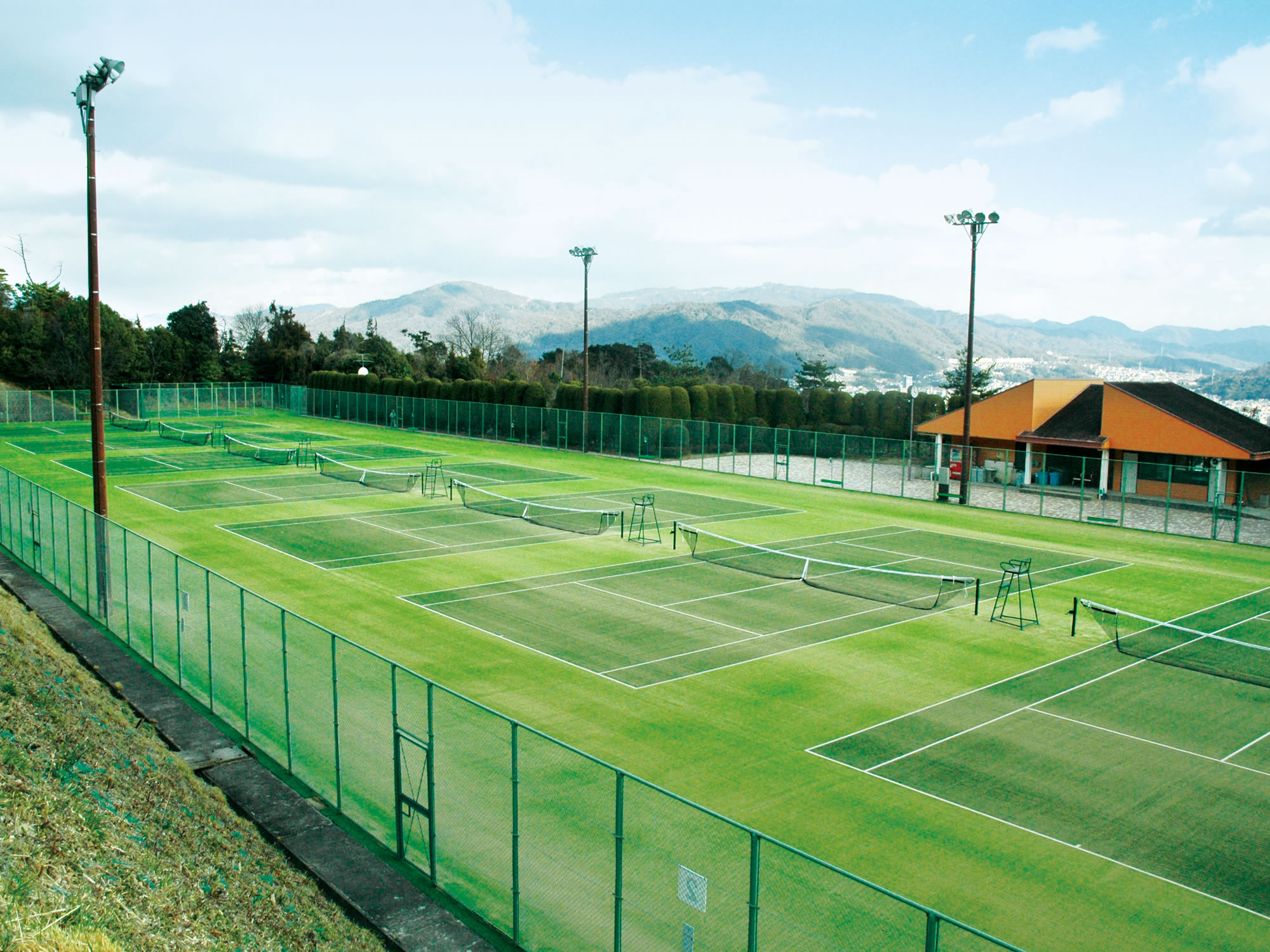 軟式・硬式両用8面及び壁打練習コートは、オムニコートで整備されており、7,000平方メートル(約2,000坪)の広さを誇るテニスコート。体育の講義やクラブ活動のほか、学生の大会などにも使用され、専用のテニスクラブハウスも隣接しています。