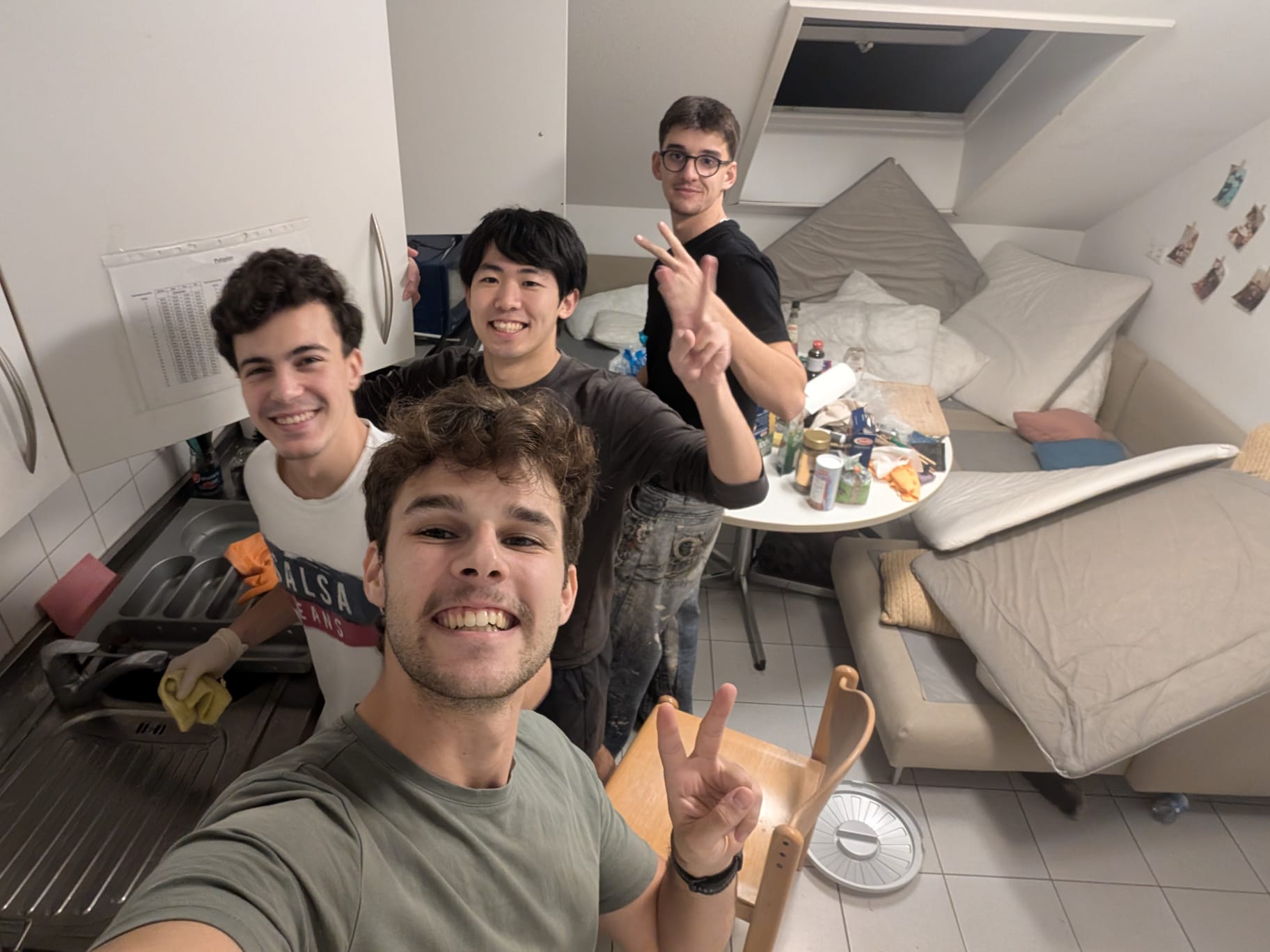 共有キッチンのため僕は注意して使っていても、使った食器をそのままにしたり、キッチンが汚くなることが多く少しストレスです。夜うるさくなることもありますが、毎日充実した日々を過ごしています。前学期では和み館でRAとして活動していましたが、ドイツでの寮生活を通してさらに異文化理解を深める貴重な経験となっています。