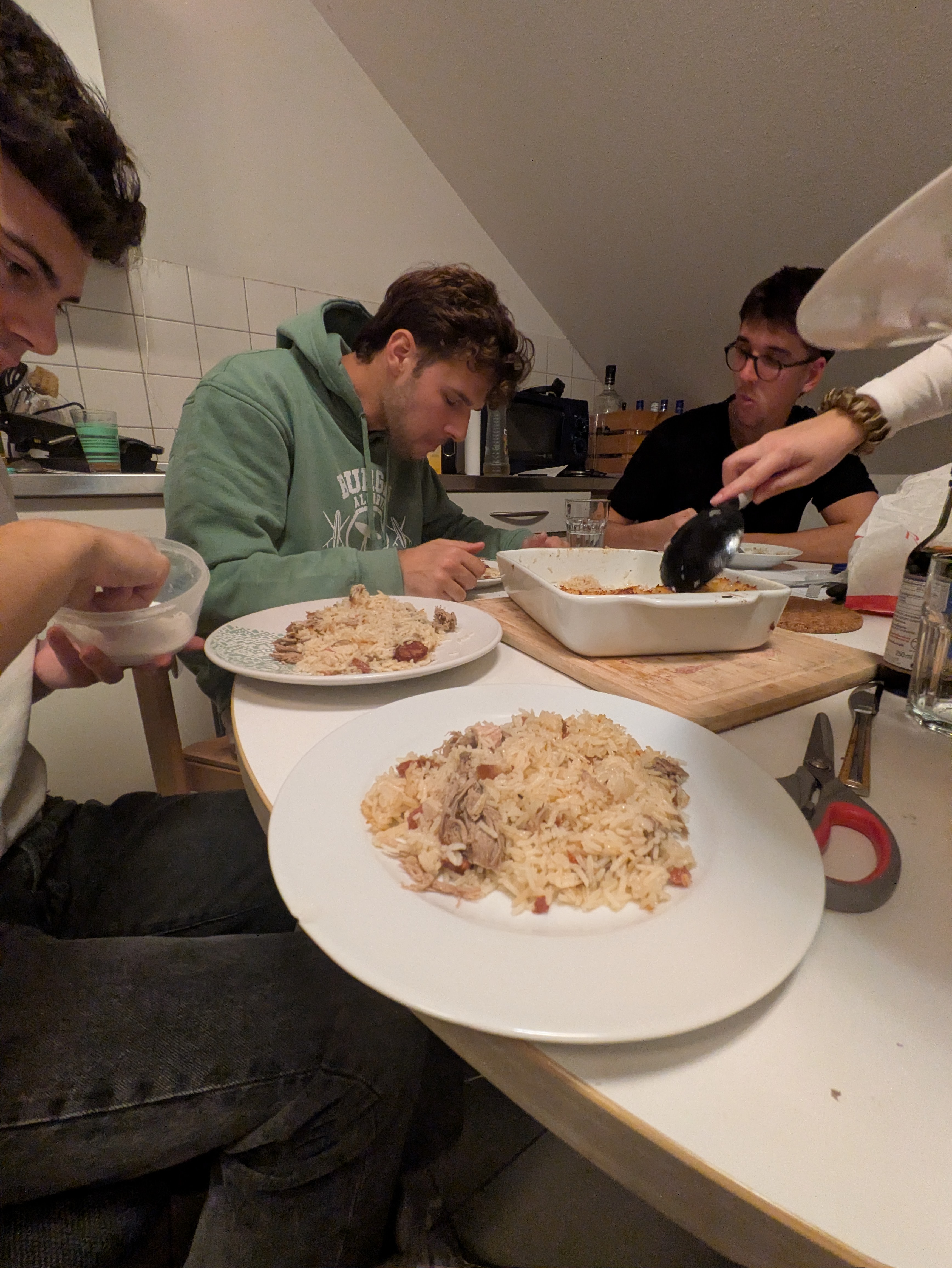 当初はこういったタイプの寮を望んでいませんでしたが、結果的にそこで多くの友達ができました。毎晩、ポルトガル人ルームメイトが他の階にいる友人を誘って部屋に来て毎日とても賑やかです。料理などは意外とお米を食べていたり、ソーセージをボイルするなど、これまでに見たことがない料理があるので、それを見ているだけでも食文化の違いを感じられ興味深いです。料理を作り合ったりもしていて、お好み焼きを作った際にはソースが多くて身体に悪そうと言われました。