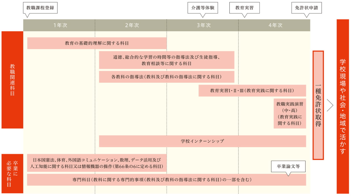※高等学校教諭専修免許状の取得には、当該教科の高等学校教諭一種免許状を所有している必要があります。