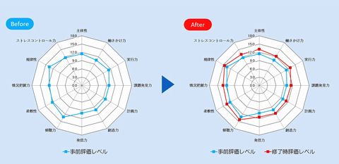 興動館教育プログラムは、平成20年・21年に経済産業省が公募した「体系的な社会人基礎力育成・評価システム開発・実証事業」に応募し、2年連続で採択されました。これを機に経済産業省が発表した「社会人基礎力」の定義を取り入れ、本学オリジナルの「人間力マップ」や「プログレスシート」を基に、学生の成長度を定量的に評価するシステムを構築し、運用を開始しています。