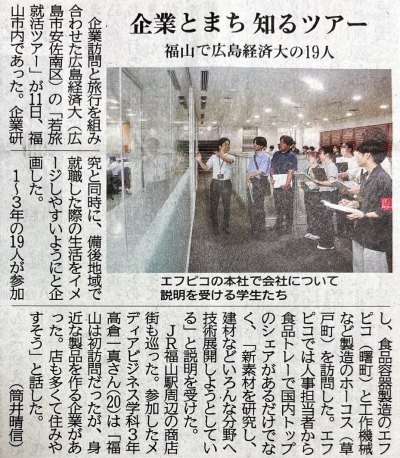 ツアーを企画、運営した若旅促進プロジェクトリーダーの増原哉汰さん(経済学科3年)は「企業や地域の魅力について、実際にその地域で働く社員の方から直接お話を聞くことで、参加者の福山市に対する見方がより一層変わったと感じました」と話してくれました。