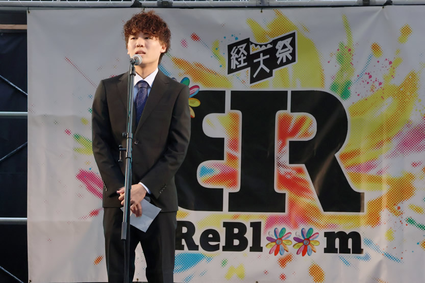 今年の経大祭は「Re Bloom」(再び開花する)というテーマを掲げ、「学生一人ひとりの個性がそれぞれに咲く一輪の花であり、それらが再び成長し、昨年とは違った新たな魅力を咲かせよう」という意味を込めました。