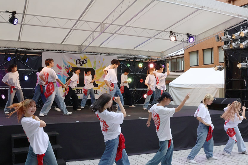 ステージでは音楽系サークルの演奏やダンスの披露の他、ダンスバトル、歌うま王決定戦が行われました。