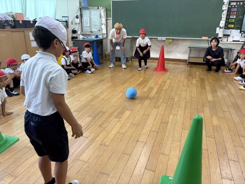 その後のパラスポーツ体験では、実際の競技ルールを小学生に向けにアレンジしたオリジナルルールを用い、「ボッチャ※1」と「ゴールボール※2」を体験しました。