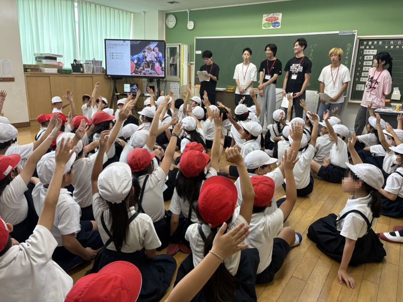 プロジェクトリーダーの早瀬光汰さん(経済学科3年)は「子どもたちに、クイズや実際の体験を通してパラスポーツを楽しみながら学んでもらうことができました。この授業が、相手の立場に立って考えたり、優しさを持って行動したりするきっかけになれば嬉しいです。」と話してくれました。