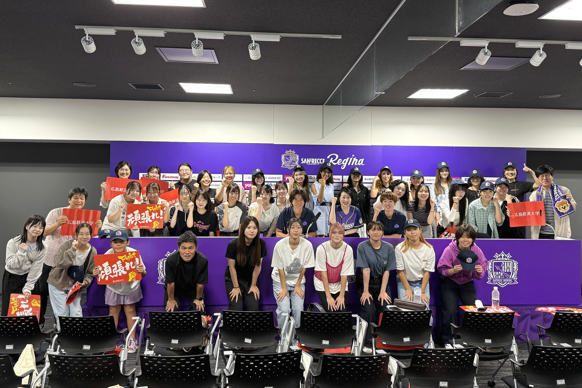 この企画は、地元・広島の女子サッカーチーム「サンフレッチェ広島レジーナ」で活躍する選手を応援したいと、女子学生らが発案したもので、サンフレッチェ側に趣旨を伝えたところ、今回の観戦会の開催が決定しました。