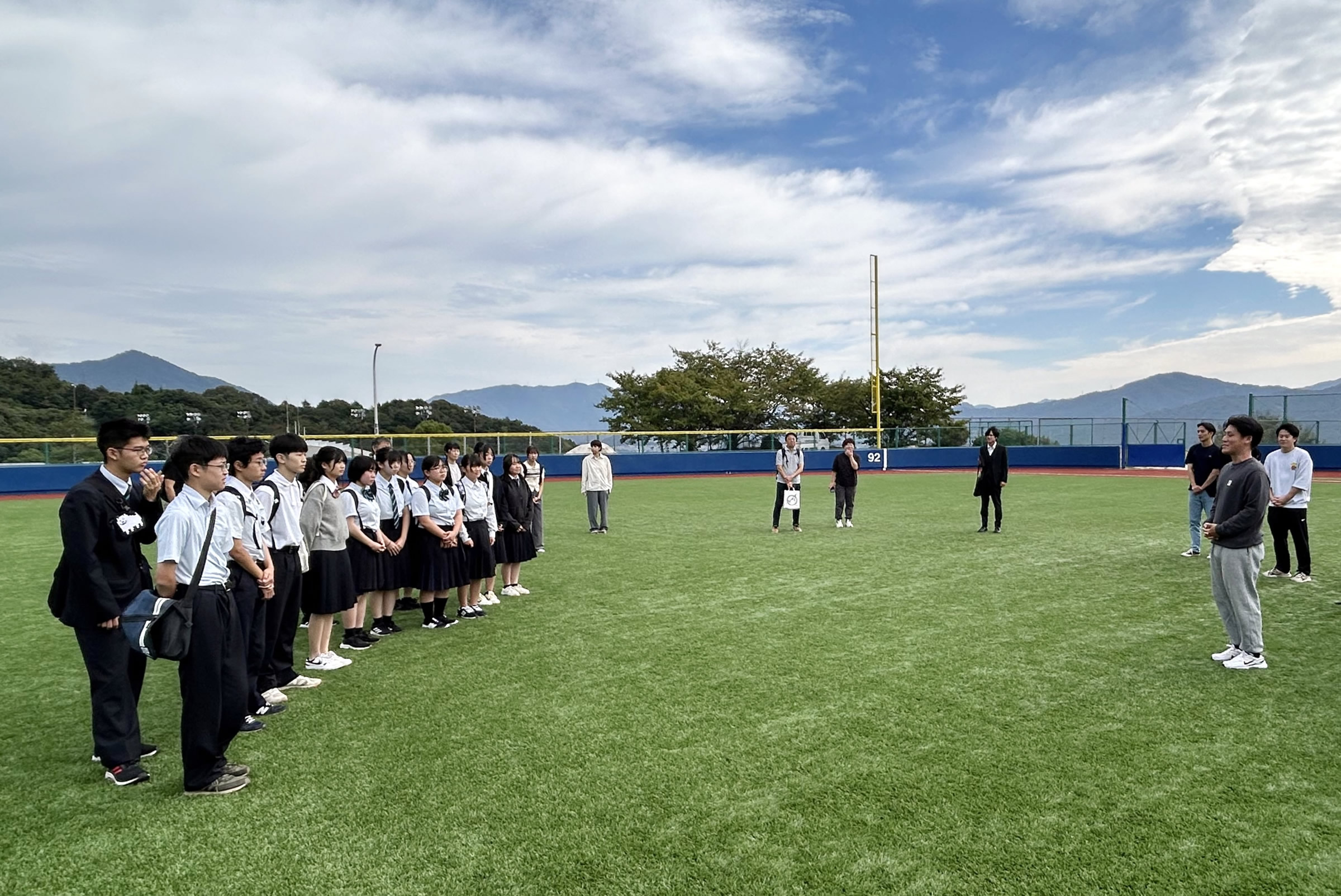 10月2日(木)、渡辺泰弘ゼミ(スポーツ経営学科)が北海道幕別清陵高等学校の生徒7名、広島県立加計高等学校芸北分校の生徒6名を案内しました。渡辺ゼミでは、地域スポーツの現場でのボランティア活動やスポーツイベントでの市場調査を行っており、今回一般財団法人どんぐり財団から依頼を受けて実現したものです。