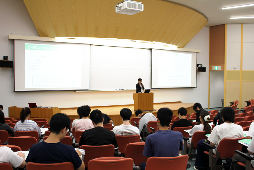 10月2日(木)、3年次対象「第1回 就職ガイダンス」を開催しました。就職活動本番まであと5ヶ月となり、後期最初の支援プログラムとして、「自己分析~履歴書・エントリーシート対策~」をテーマに行いました。