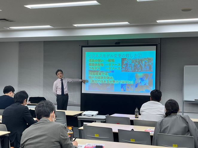 本学では、地域貢献活動の一環として社会人を対象にビジネスで役立つ専門知識を習得する講座を毎年開講しており、経済、経営、マーケティング、財務・会計、広告・メディア、教養など多彩な学問分野の講座を行っています。