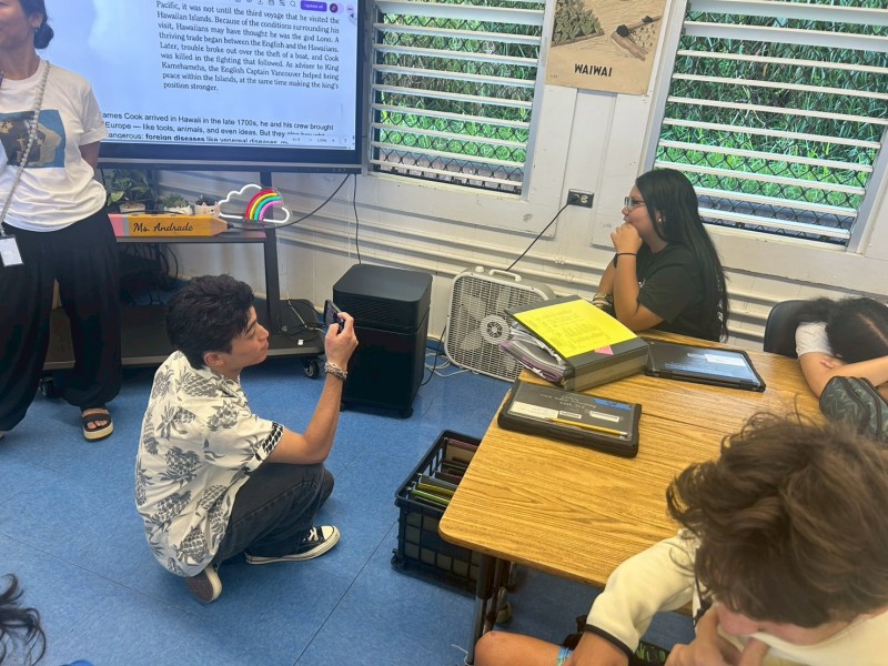 現地では、中学校、高校合計4校を訪問し、教員や生徒へのインタビューやアンケートを通じて、多様な国籍の人々が暮らすハワイで、互いの文化や価値観を尊重し理解しあうために、学校や家庭、地域社会で実際に取り組まれていることや意識されていることについて調査を行いました。また、本プロジェクトが企画している広島へのスタディツアー(ハワイから広島を訪問する学生に両地域のつながりや広島の魅力、歴史を伝えることを目的としている)についての情報発信を行いました。