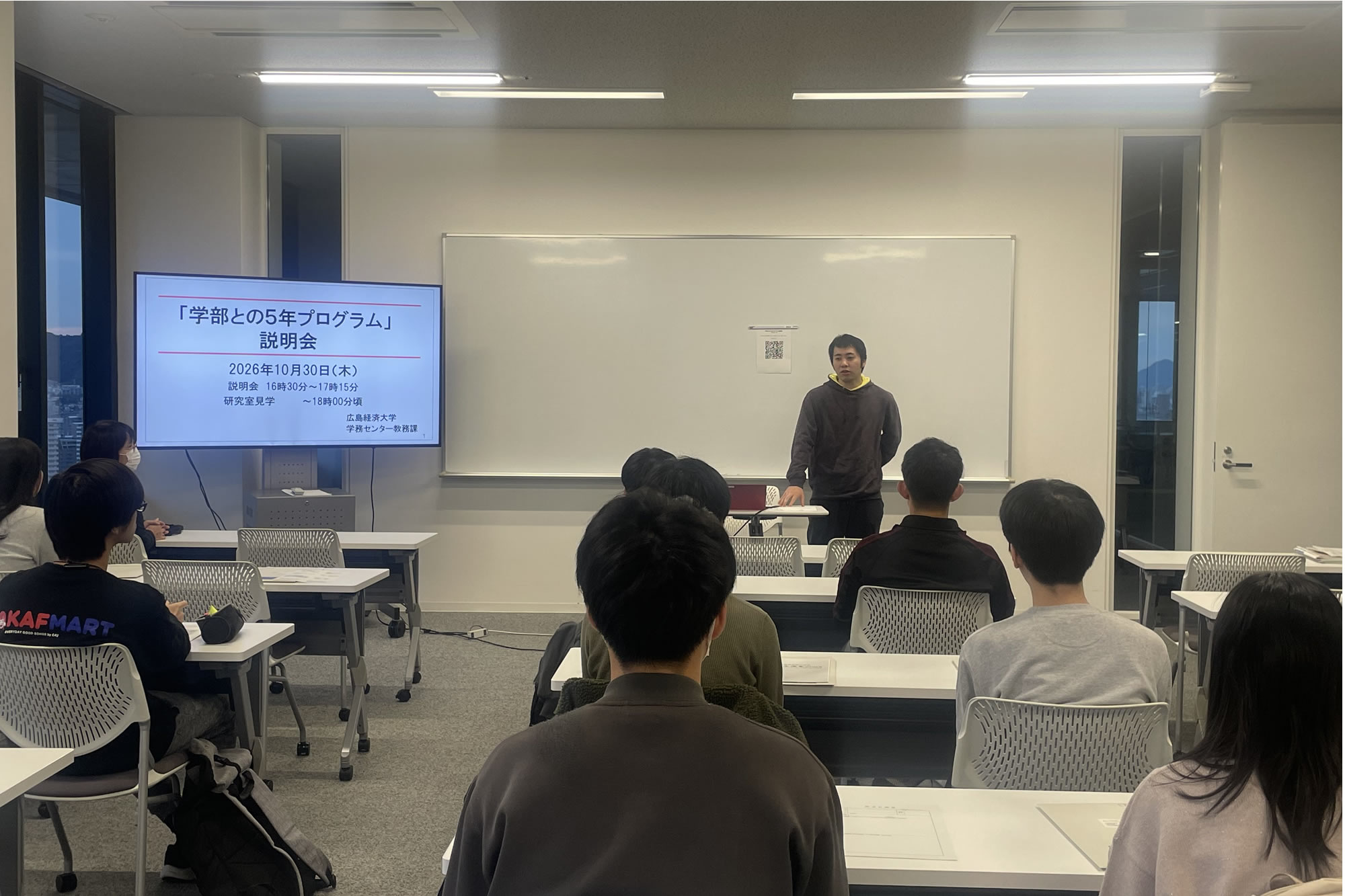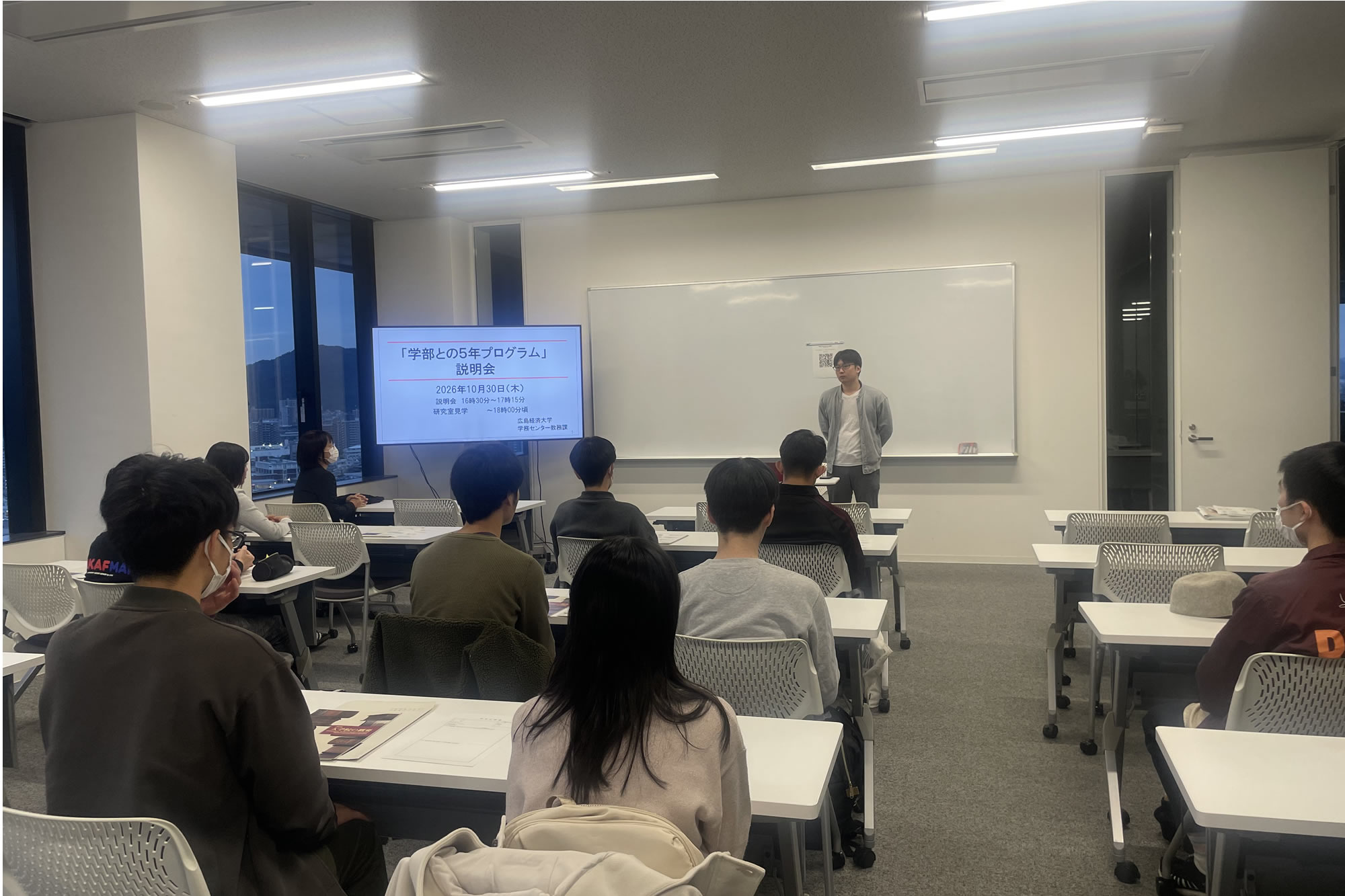10月30日(水)、「学部との5年プログラム説明会」を開催しました。当日は、大学院進学に関心を持つ学部生9名が参加し、熱心に耳を傾けていました。