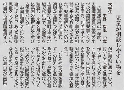 11/7/2025 教育・研究 学生の活動 11月6日(木)、中野疾風さん(経営学部経営学科2年)の投稿が、中国新聞(27面)に掲載されました。これは、胤森裕暢ゼミが仲間との共感的で創造的な対話を通して、これからの教育について学生なりに提案し、中国新聞に投稿する取り組みです。 ※中国新聞2025年11月6日付掲載(中国新聞社の許諾を得ています) 戻る