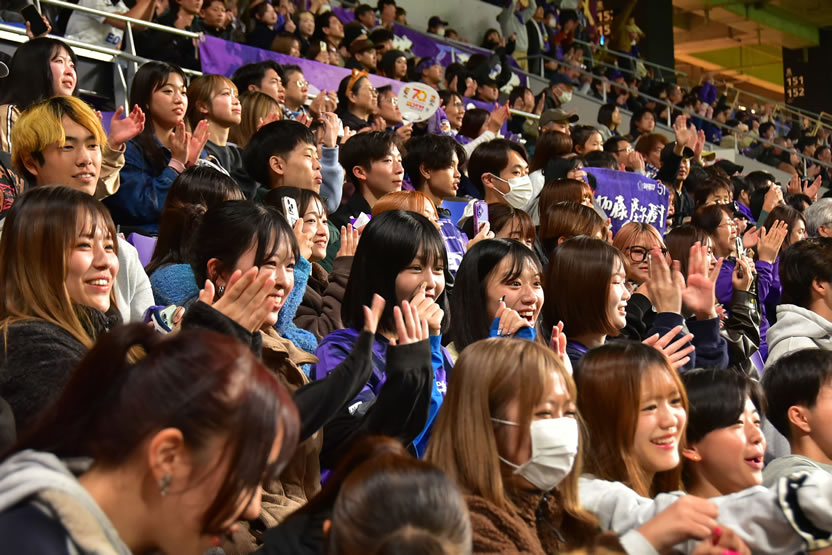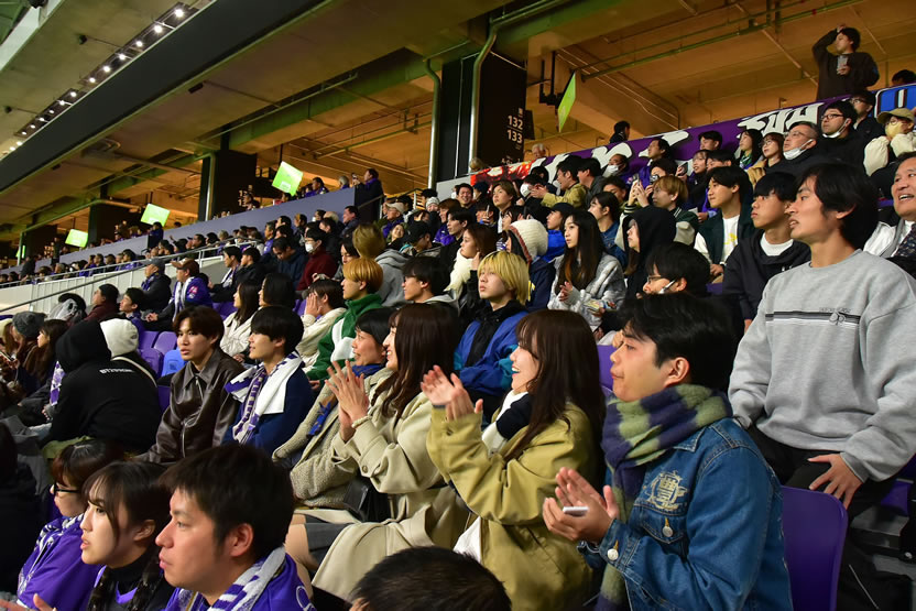 この度、サンフレッチェ広島様のご厚意により、少し冷え込んできた11月4日(火)19時からの「エディオンピースウイング広島」でのACLE「江原FC」戦に、687名の学生・教職員(一部家族同伴)で観戦させて頂きました。