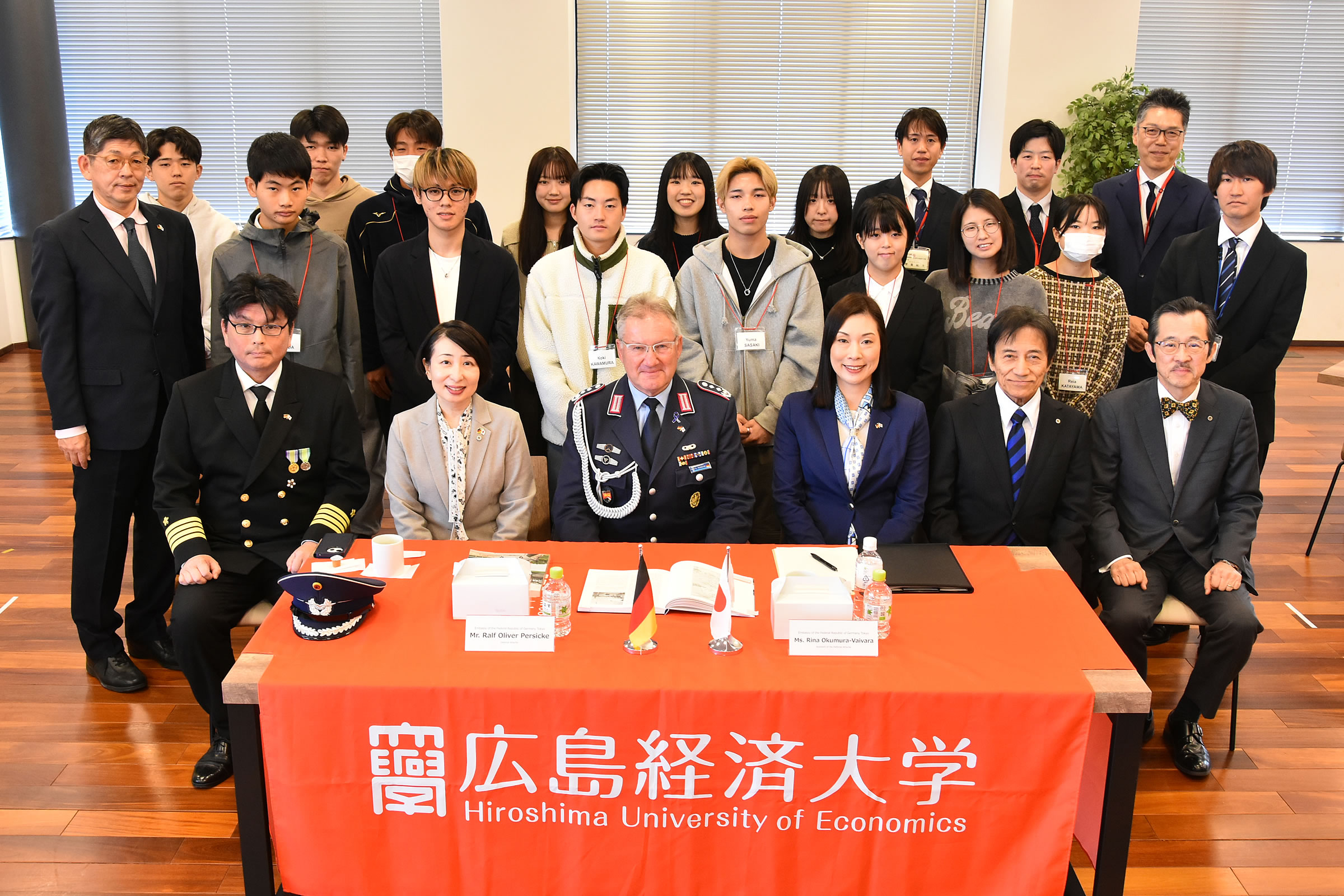ペルジケ大佐は前日、第一次世界大戦中に俘虜として収容されたドイツ兵オットー・パーペ氏をしのぶ追悼式に参列し、さらに似島俘虜収容所跡も訪問されています。今回の来学は、その流れの一環として実現したものです。