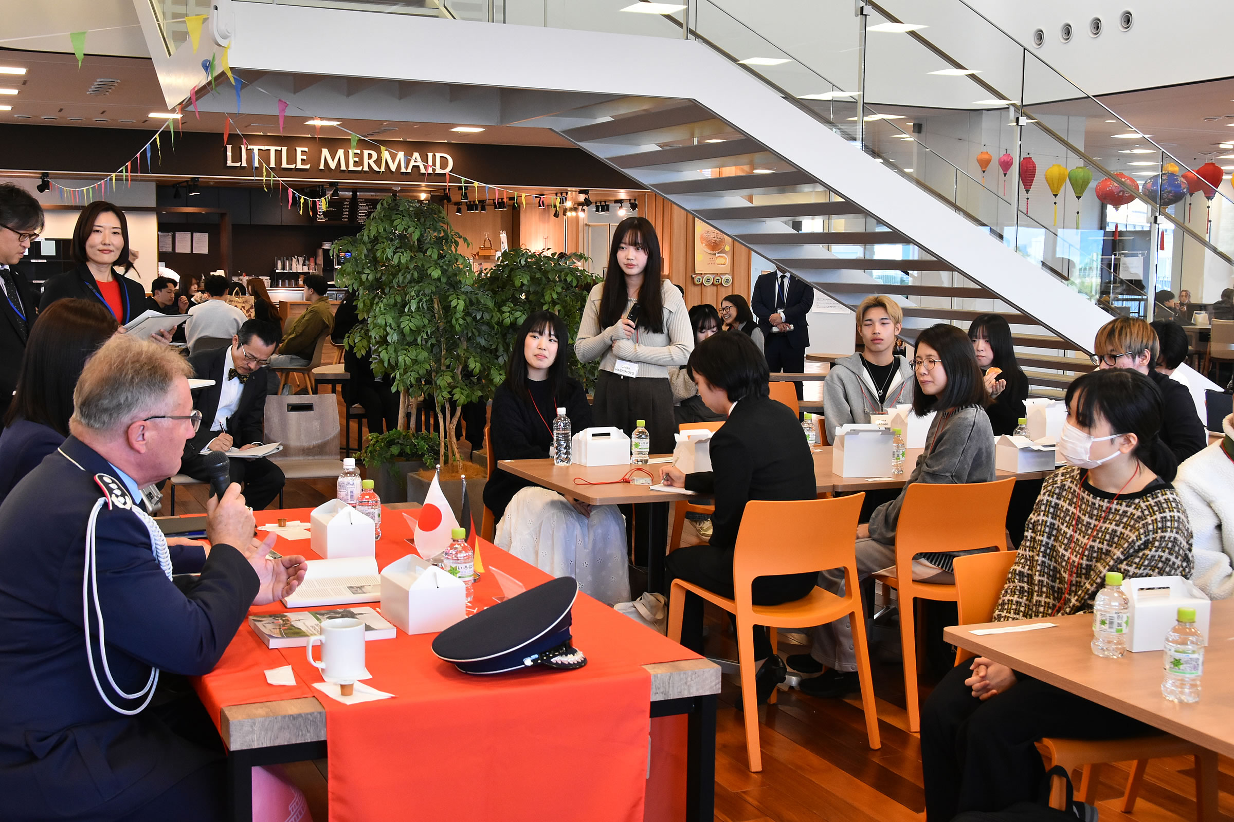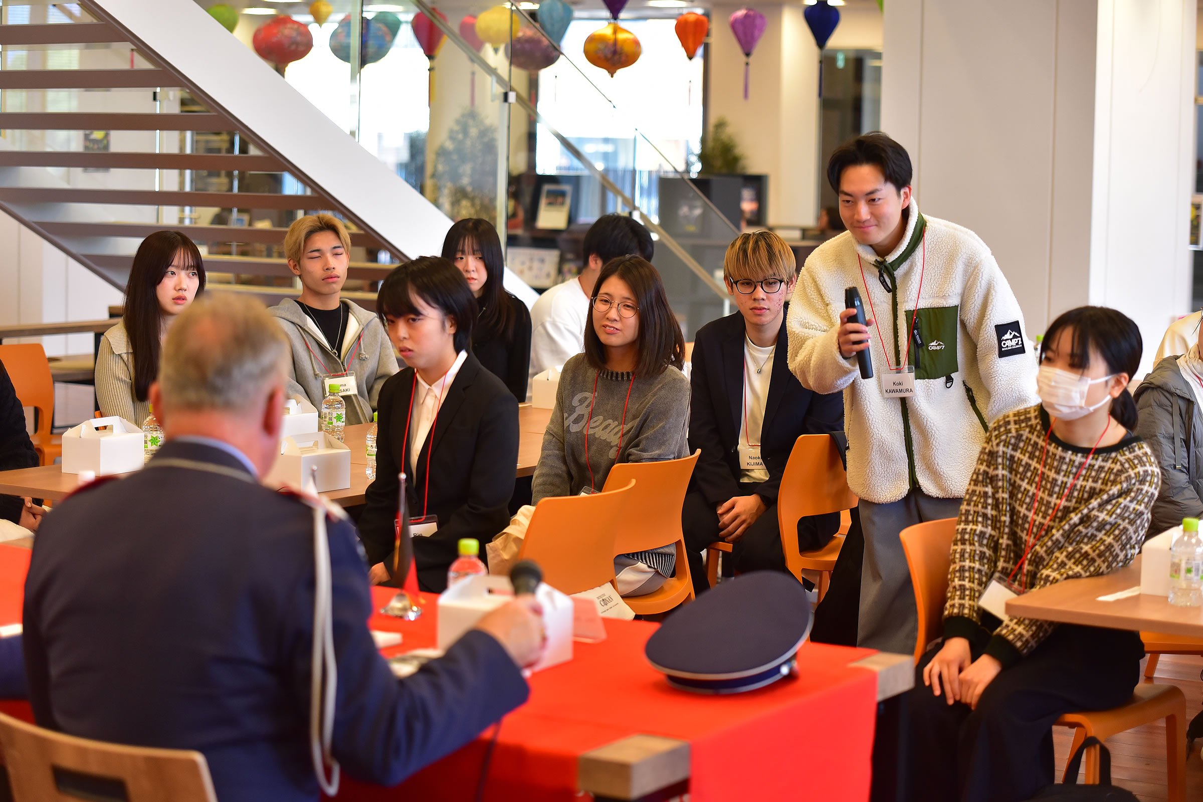 ペルジケ空軍大佐をお招きし、11月4日(火)に明徳館5階で学生との座談会・昼食会を開催しました。