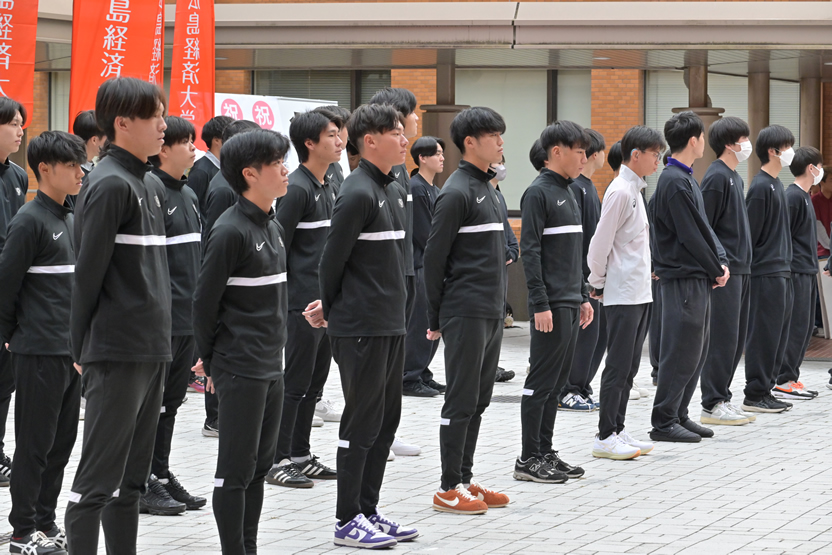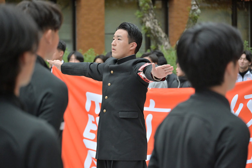 最後に應援團からエールが送られ、学生・教職員の拍手で選手たちを送り出しました。