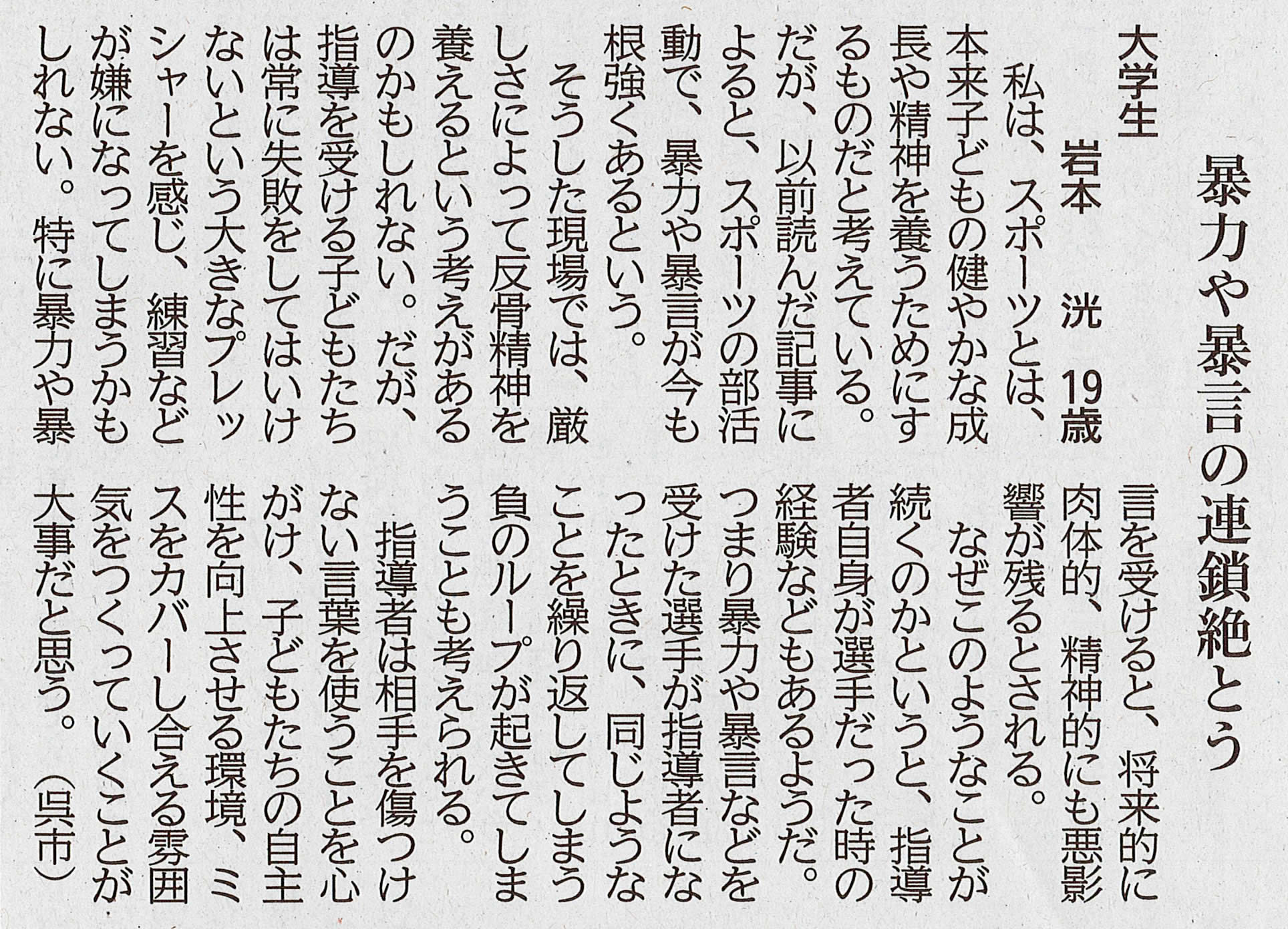 11/18/2025 教育・研究 学生の活動 11月15日(土)、岩本洸さん(経済学部経済学科2年)の投稿が、中国新聞(27面)に掲載されました。これは、胤森裕暢ゼミが仲間との共感的で創造的な対話を通して、これからの教育について学生なりに提案し、中国新聞に投稿する取り組みです。 ※中国新聞2025年11月15日付掲載(中国新聞社の許諾を得ています) 戻る