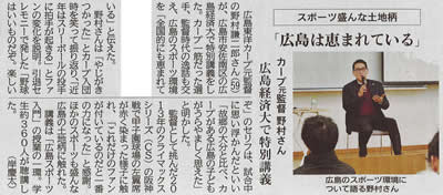 トップアスリートが語る広島のスポーツ環境をテーマに、広島で選手としても監督としても活躍された野村氏から経験を踏まえたリアルな話を語っていただき、学生たちにとってとても有意義な時間となりました。