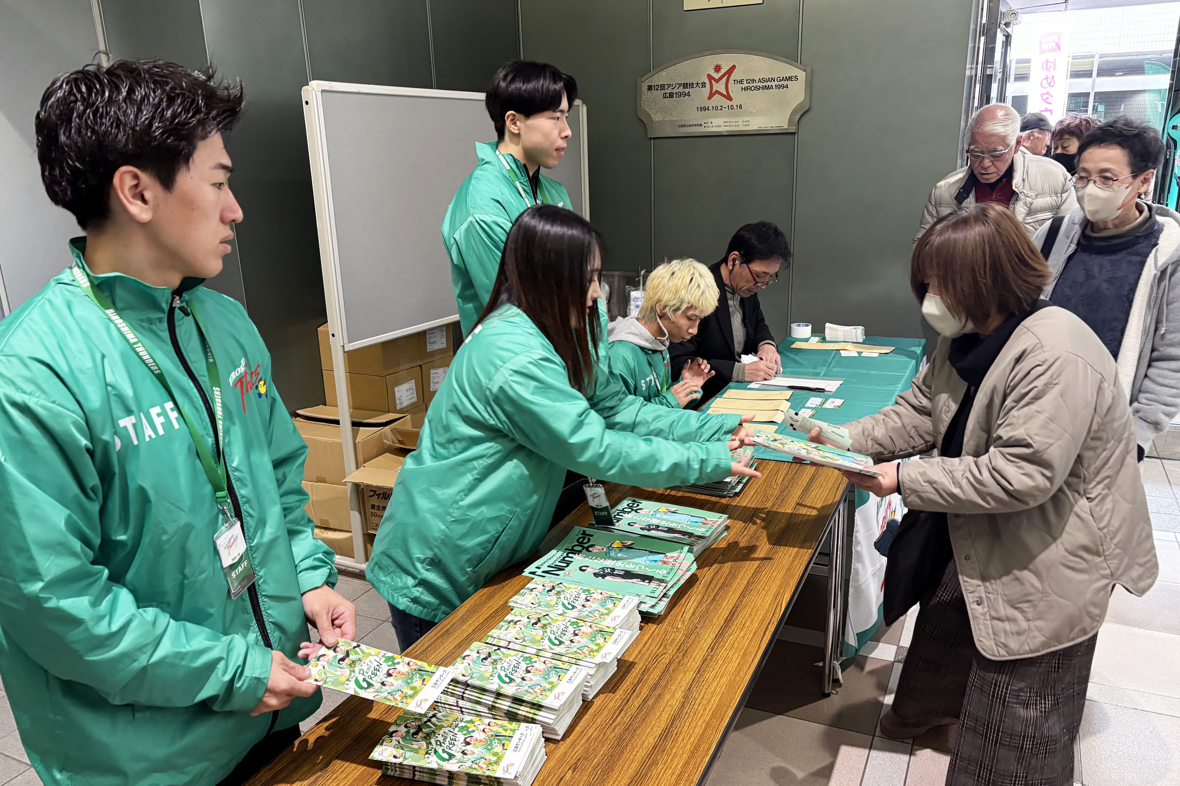 今回のサントリー戦は事前に入場券はすべて売り切れの状態で、会場は6千人を超える観客で超満員。学生たちはスタッフジャンパーをまとっていたため、観客からの質問が次々に寄せられ、対応に四苦八苦する場面もありました。