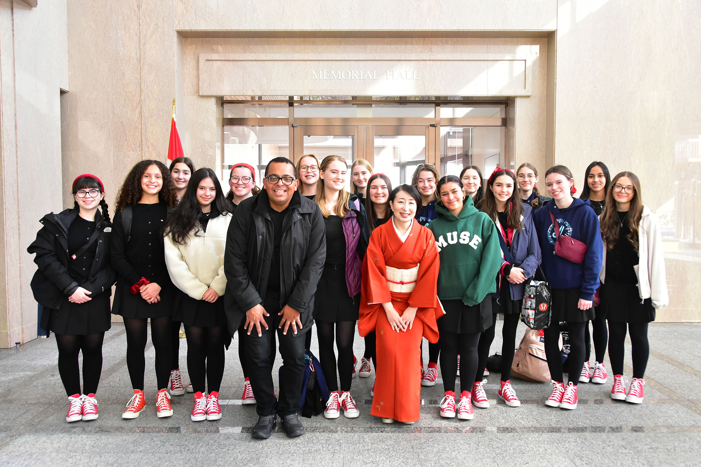 本訪問は、音楽を通じた国際文化交流の促進と、若い世代による相互理解の深化を目的として実施されたもので、本学の石田優子学長が在広島カナダ名誉領事であることから実現しました。
