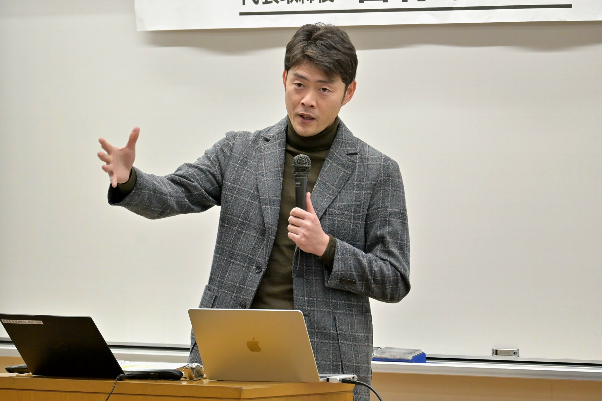 また、広島県警察本部の秋山 友警部補にお越しいただき、「大学生と薬物犯罪」と題して講演をしていただきました。