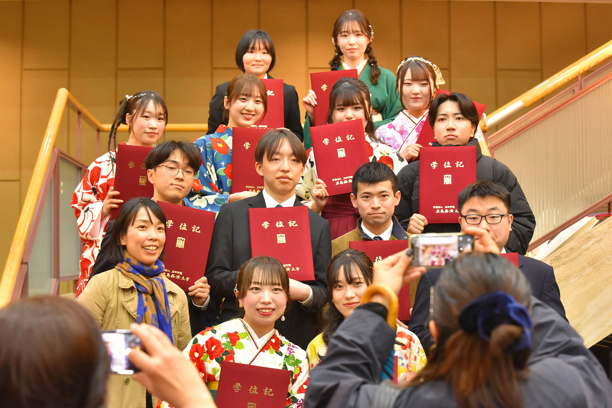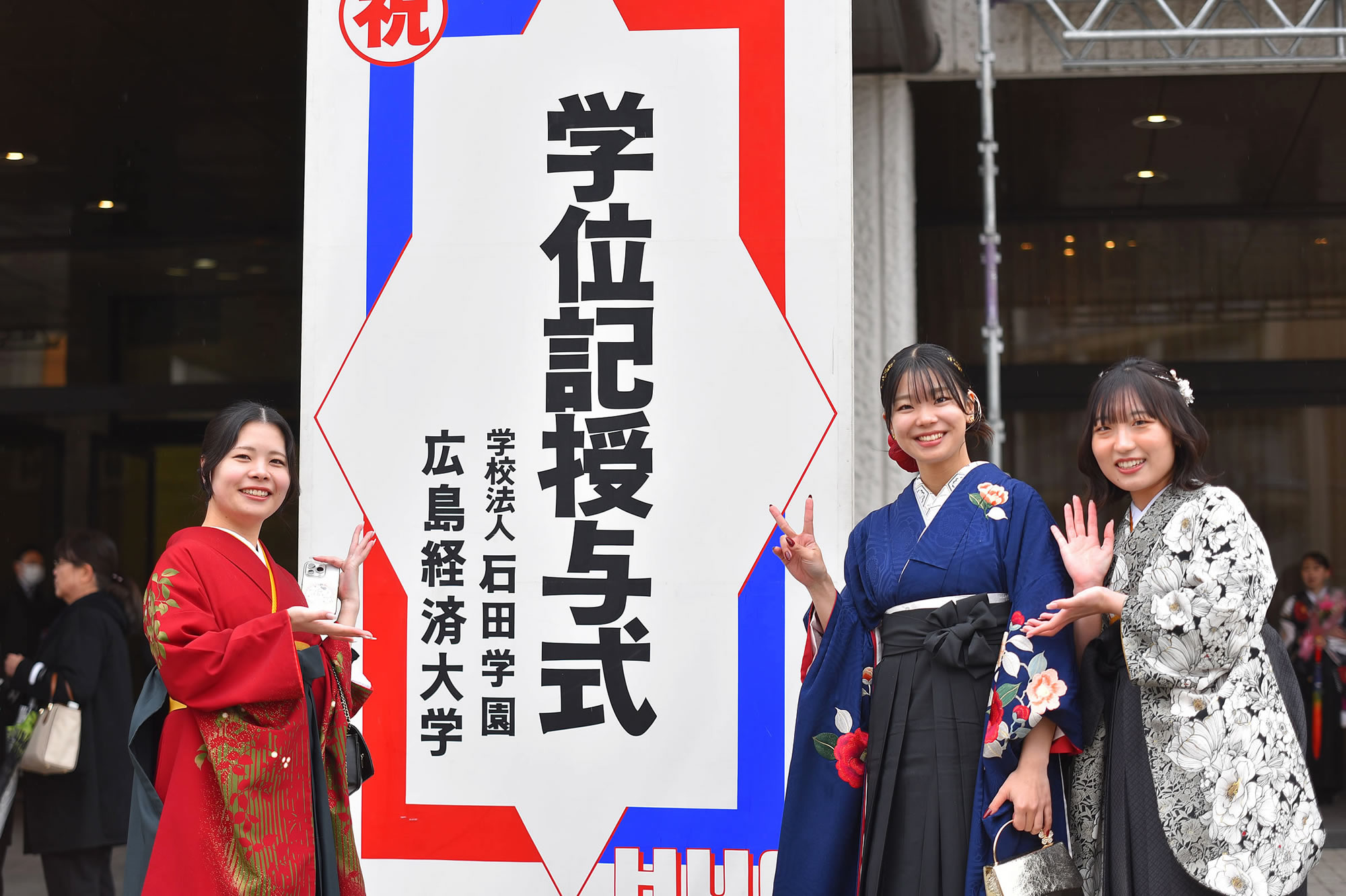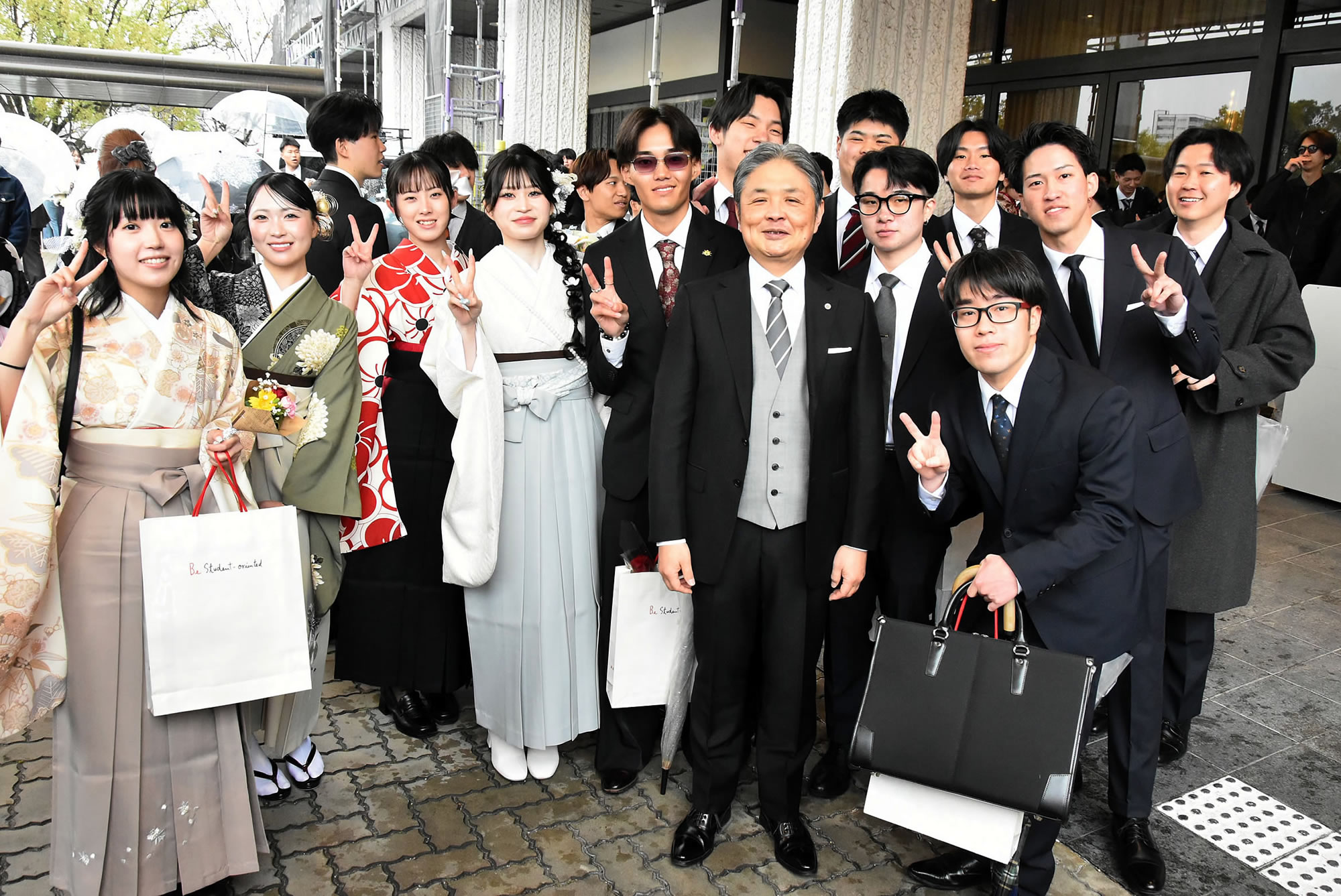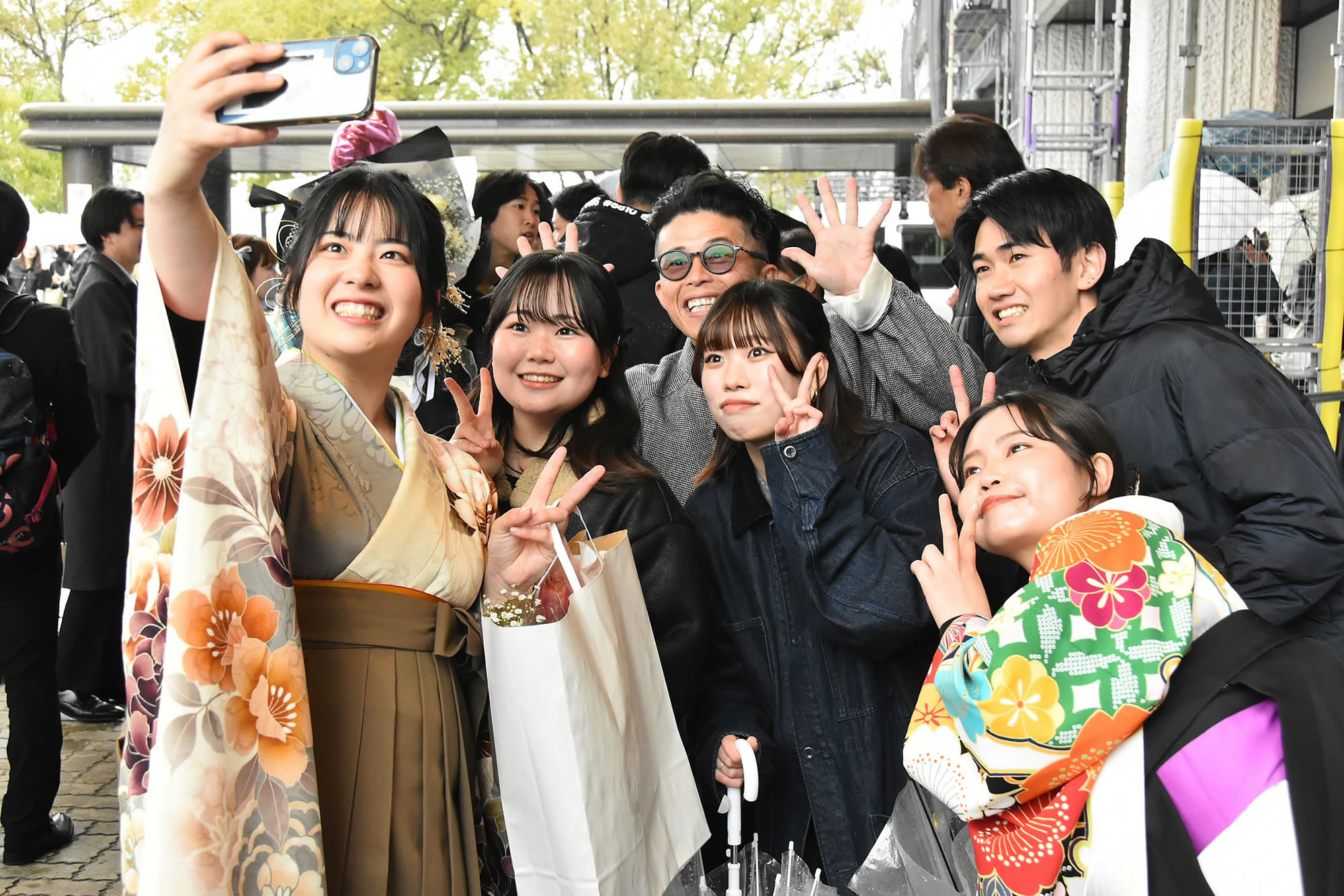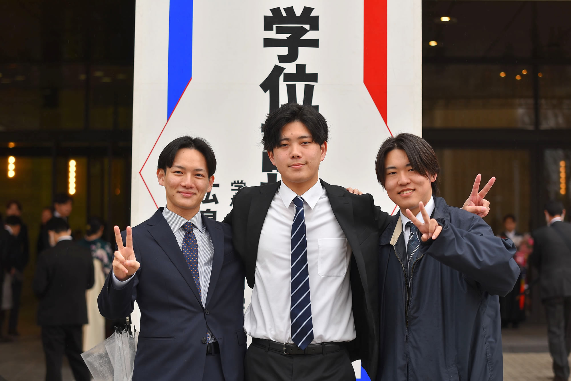 式典後、卒業生たちの表情には、充実した4年間を感じさせるような晴れやかな笑顔があふれていました。お世話になった教職員に感謝の言葉を伝えたり、友人や後輩と記念撮影をしたりと、互いに喜びを分かち合いつつ別れの時を惜しむ姿が印象的でした。