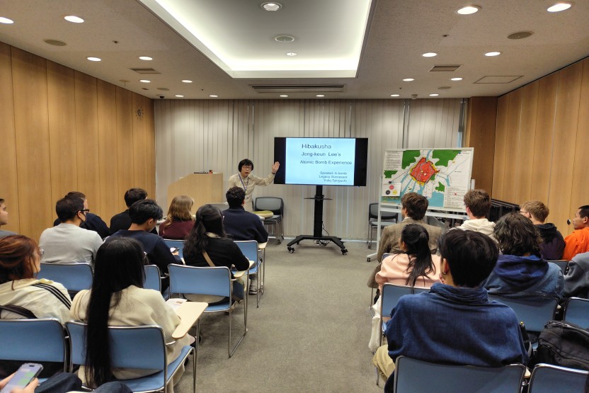 ViVAというグループに所属する日本人をはじめとする学生が参加し、10か国・地域23名の交換留学生とともに、「被爆体験伝承講和」を聴講し、資料館の見学を行い、平和について理解を深める貴重な機会となりました。