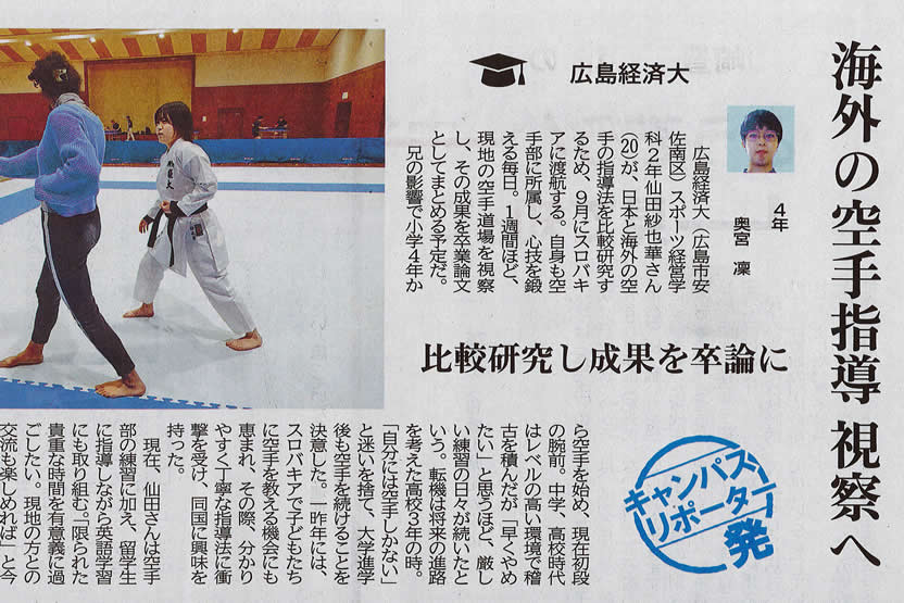 - 【メディア情報/キャンパスリポーター】学生の記事が中国新聞に掲載されました。(短期留学の体験を発表)